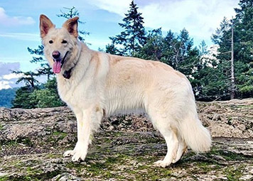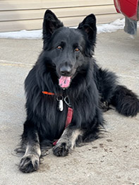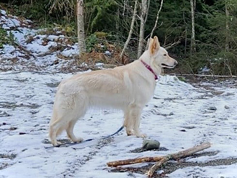 She loves splashing through forest puddles and ocean waves, while never straying too far down the path without you. Her excellent temperament shines in her work as a therapy dog (in training), supporting people of all ages, especially youth. Freya adores people, greeting visitors with a song and guiding them to the couch for cuddles. Self assured with a low prey drive, her friends include ducks, cats, and alpacas.
